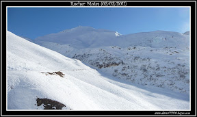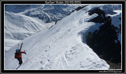 Nous attaquons ensuite directement les pentes SE en plein soleil, mais le vent ne permet pas, ou très peu à la neige de se transformer.