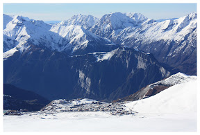 Itinéraire suivi : Parking Restaurant > Intermédiaire 2100 > Piste des Chamois > Dôme des Petites Rousses > Retour parking restaurant. Malgré le redoux assez marqué, je décide tout de même de sortir prendre l'air du côté de l'Alpe d'Huez. La neige n'a du coup pas tellement fondu dès qu'on passe au dessus des 2100/2200 m d'altitude. Toutefois, la limite pluie/neige est montée assez haut, vers 2800 m, le manteu neigeux s'est donc bien transformé. Mais la nuit a suffi à bien regeler tout ça.
