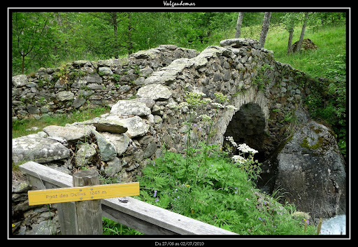 Après une pause pique-nique, nous continuons au Col de Pétarel, où la fraîcheur est au rendez-vous, puis dans la traversée jusqu’au Col de Béranne, nous avons même droit à une forte averse de pluie (5 minutes au plus mais bien froide). La vue est superbe malgré les sommets bouchés. Nous attaquons rapidement la descente car le ciel devient de plus en plus menaçant, et des trombes d’eau tombèrent pendant une bonne demi-heure. Au loin, les éclairs éclatent. Mais la fin de la descente resta tranquille. Ce vallon est bien plus sauvage que celui de la montée, le sentier est à peine visible par endroit, la flore y est très riche. Nous terminons cette journée par un petit aller-retour au superbe pont des Oulles en contre-bas du village des Portes (curiosité à ne pas manquer).